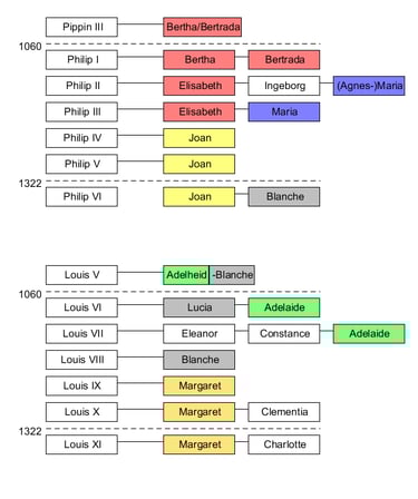 Kings named Louis almost exclusively married queens named Blanche, Adelaide, or Margaret.
