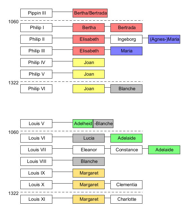 Kings named Philip almost exclusively married queens named Bertha, Elizabeth, Mary, or Joanna.