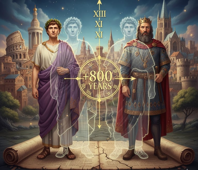 When the dates follow such a clearly recognizable grid, then the line between historiography and pure fiction has been crossed. Anchoring four such pivotal figures in a rigid chronological framework—where Augustus and Charlemagne are separated by 800 years, Caesar and Charles V by 2 x 800 years, while the two Charleses share a birth year through a calendar trick—is an achievement too complex to be dismissed as coincidence or simple literary allusion. It points toward a deliberate construction, where history itself was written according to a pre-existing blueprint.