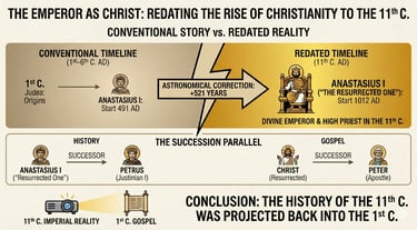 When the corrected timeline is applied, the conclusion is as clear as it is radical. The foundational story of Christianity was not an event from 1st-century Judea. It appears to be the story of a powerful 11th-century Roman Emperor in Constantinople whose life, divine titles, and succession by a man named Peter were used as the direct template to write the Gospel narrative. This story was then projected backward in time by a millennium, creating the ancient history we know today.
